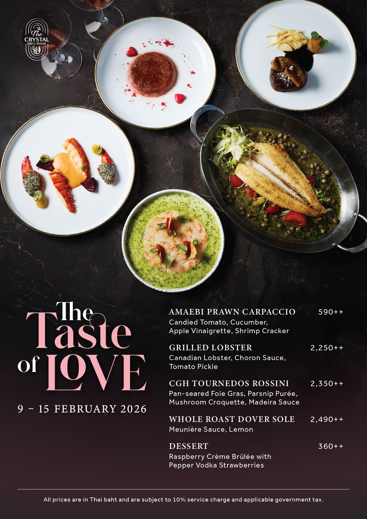 Experience the romance of Valentine’s with specially crafted dishes, from starters to desserts, served alongside the regular à la carte menu, offering an elevated dining experience and unforgettable moments with loved ones — in the magical riverside ambiance that makes The Crystal Grill House truly unique.